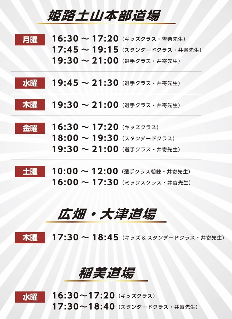 各曜日の稽古時間・場所はこちらからご確認ください。